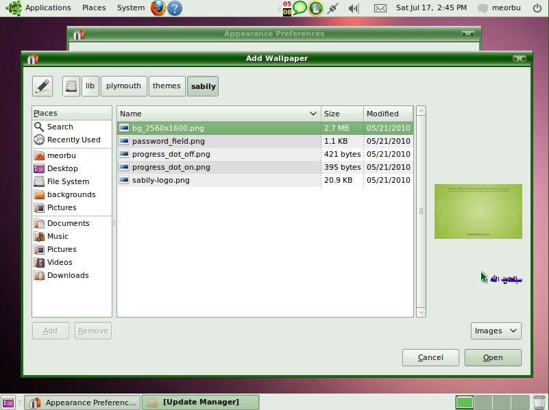 7. To fully customize Sabily Manarat, you should change theme to HumanME and change to Manarat wallpaper that you can find from, File System/lib/plymouth/themes/sabily